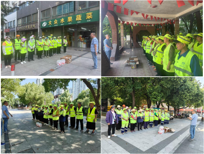 連日來,常州熱浪翻涌,驕陽似火,持續(xù)的高溫天氣“烤”驗著整座城市。然而,有這樣一群可敬的人,他們無懼“烤”驗,始終堅守在城市的大街小巷,用辛勤的汗水守護(hù)著城市的潔凈容顏——他們就是我們可愛的環(huán)衛(wèi)工人。為切實關(guān)懷在酷暑中揮汗如雨、默默奉獻(xiàn)的一線勞動者,傳遞公司的溫暖與敬意,近日,常州市環(huán)球環(huán)衛(wèi)服務(wù)有限公司南荷項目部精心組織并開展了“關(guān)愛環(huán)衛(wèi)工人·高溫送清涼”的慰問活動。